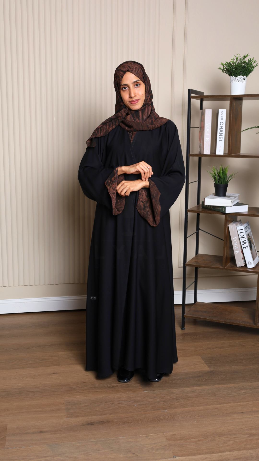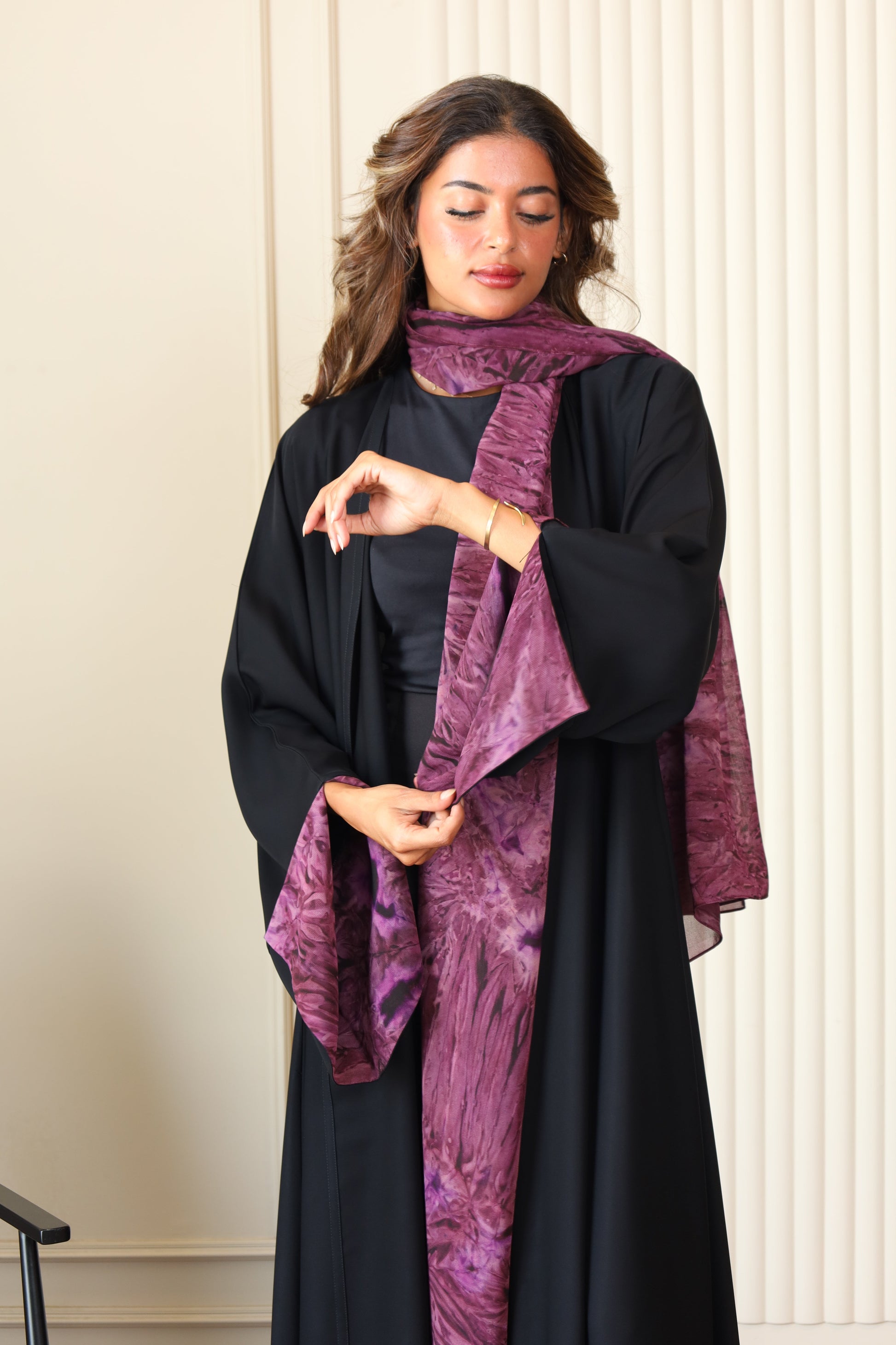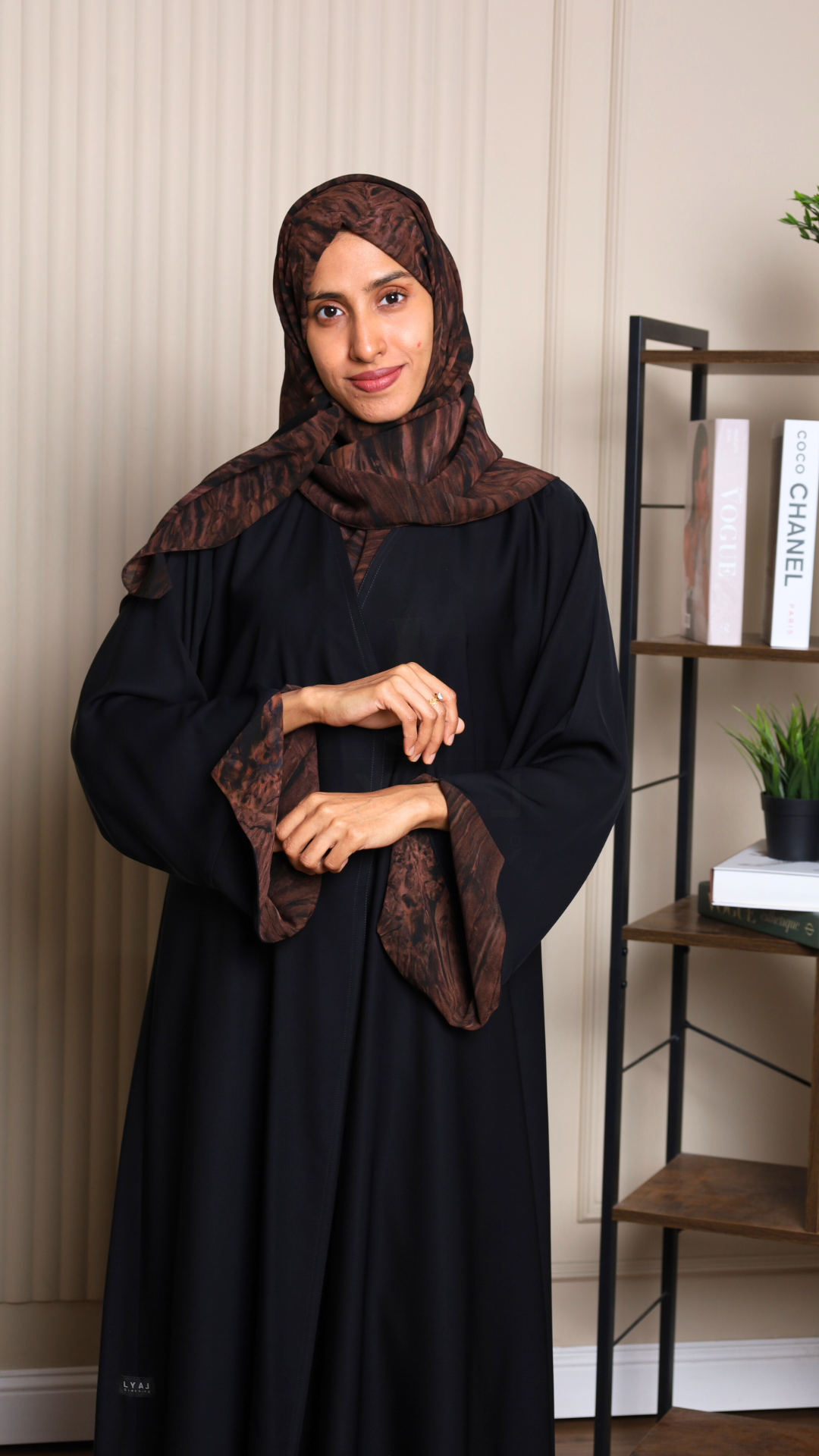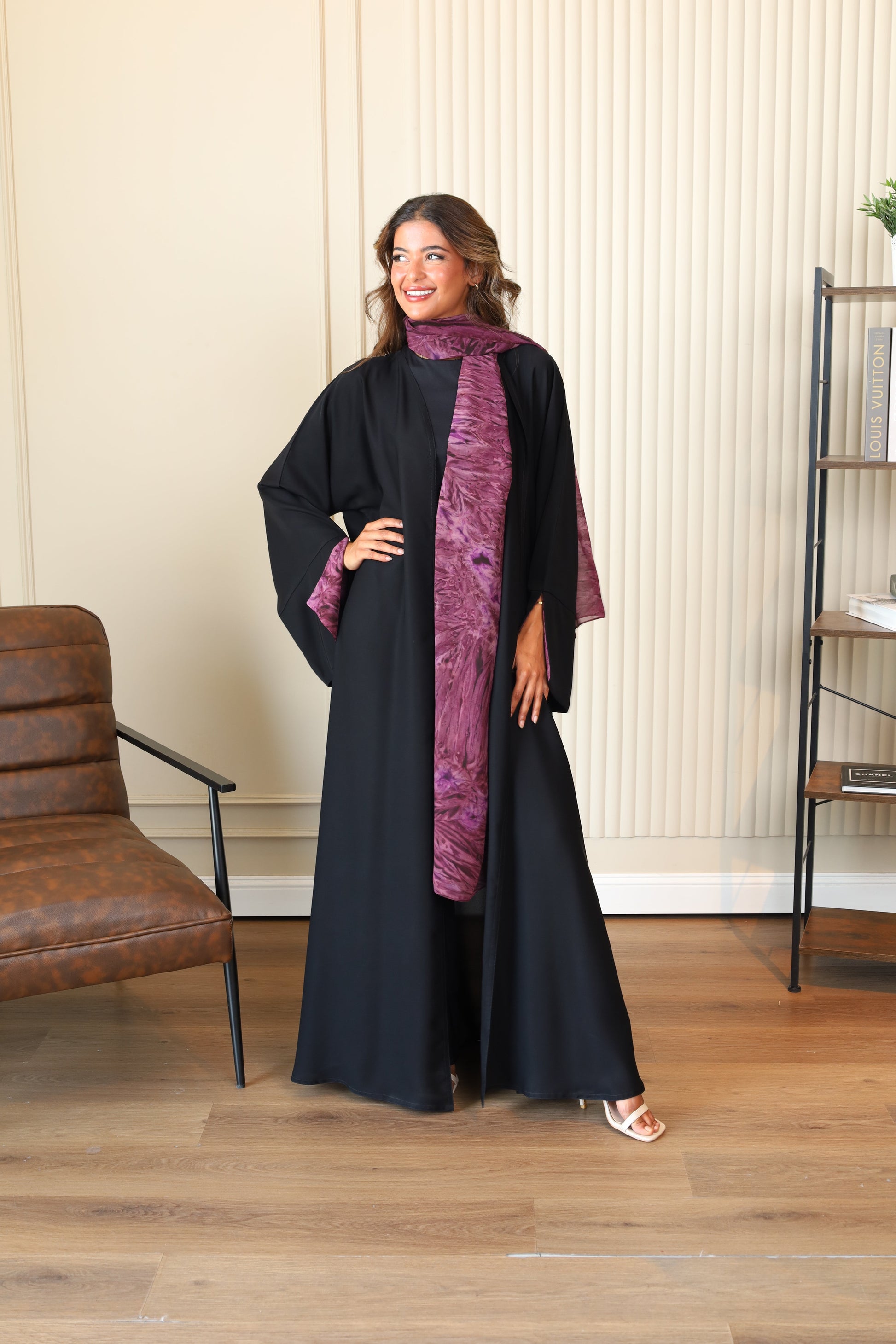 Abaya with patterned fabric on the sleeves and Hijab