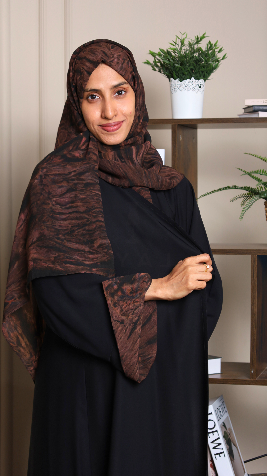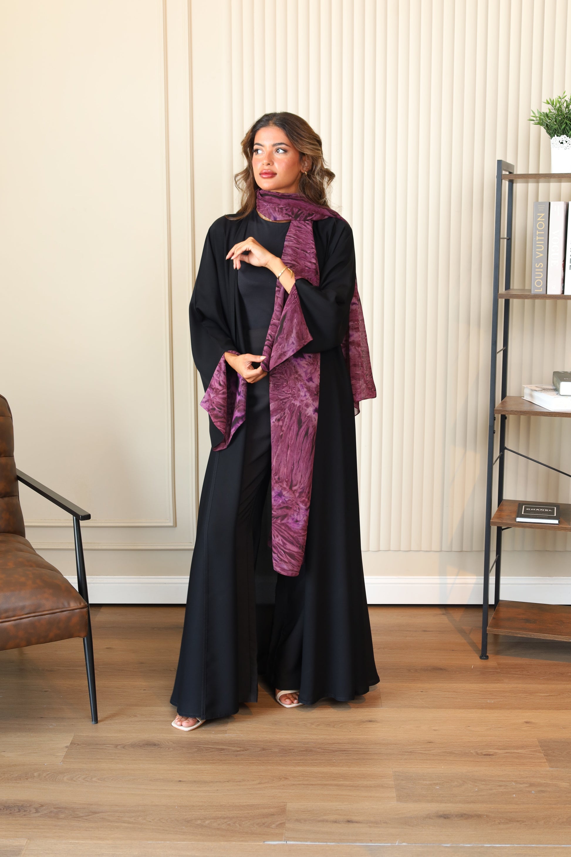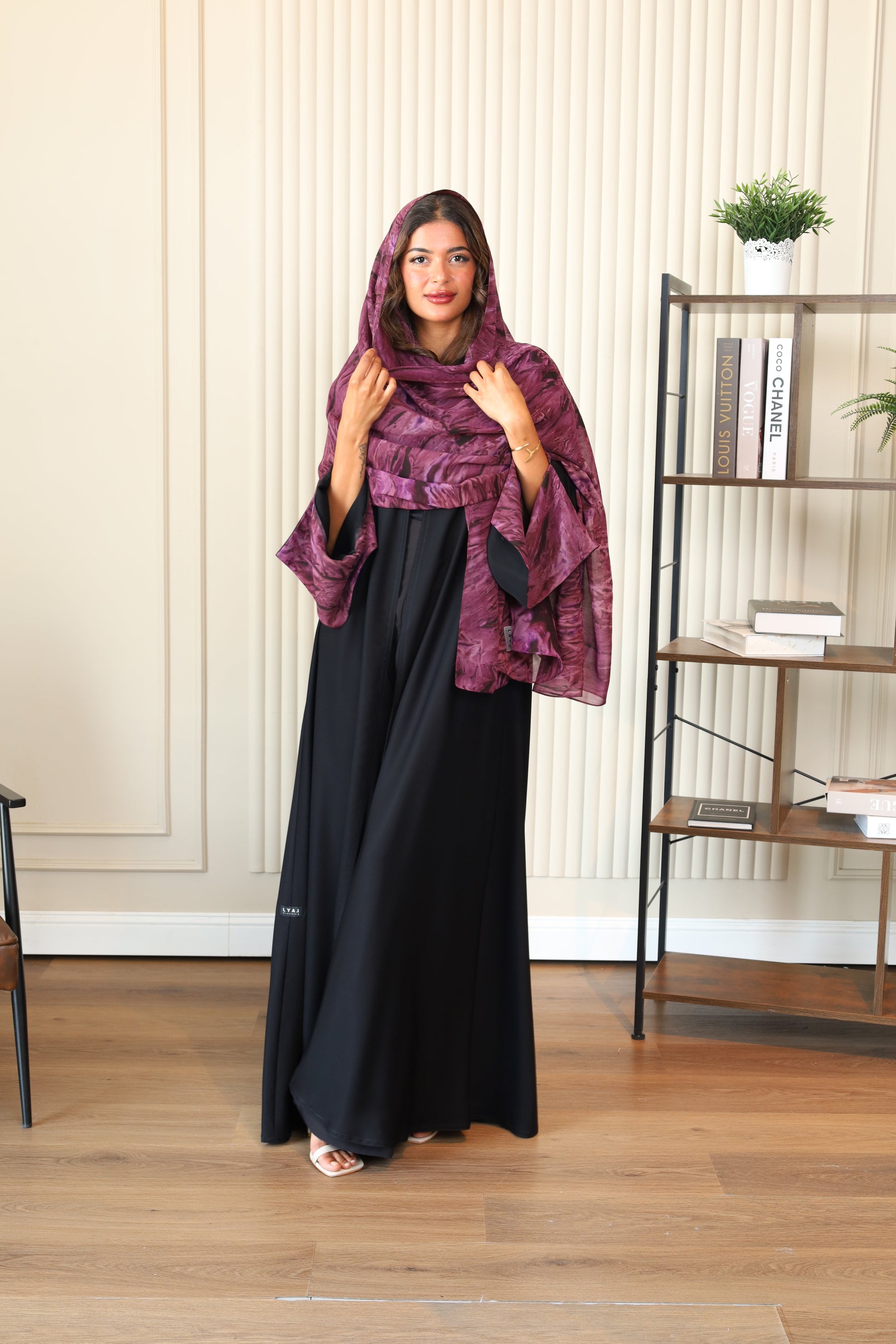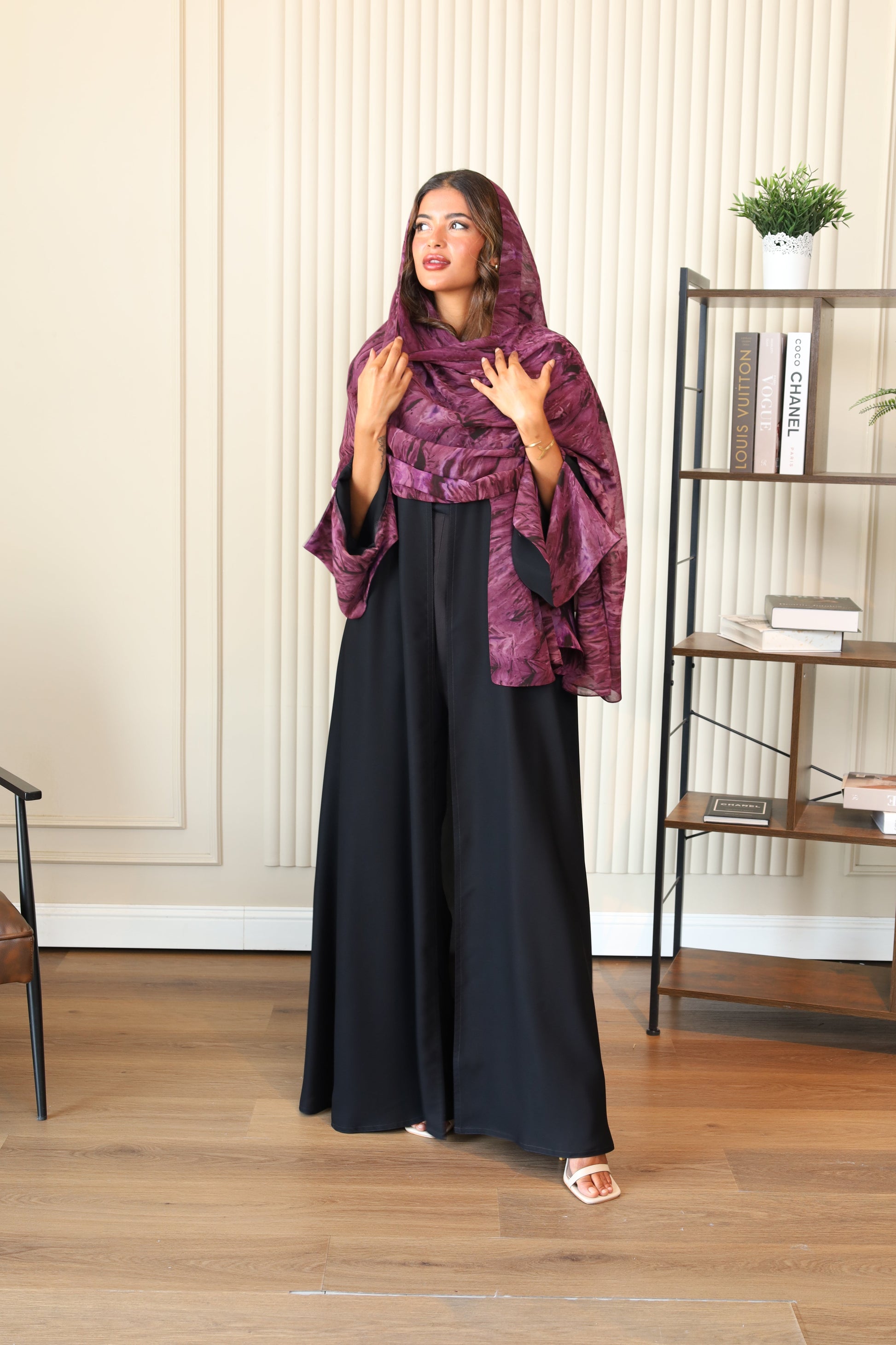 Abaya with patterned fabric on the sleeves and Hijab